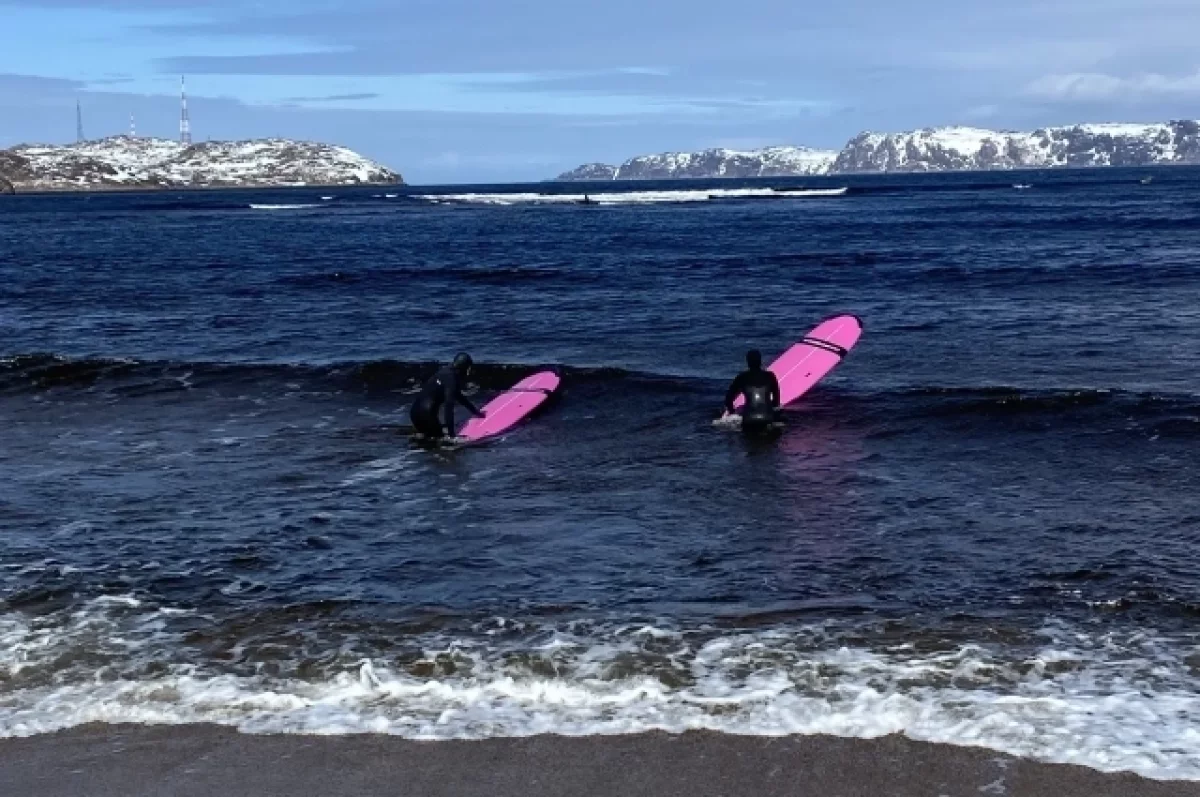 При слове «сёрфинг» воображение рисует голубую воду и залитый солнцем белоснежный пляж, но на Крайнем Севере всё по-иному: море цвета стали и заснеженные сопки.